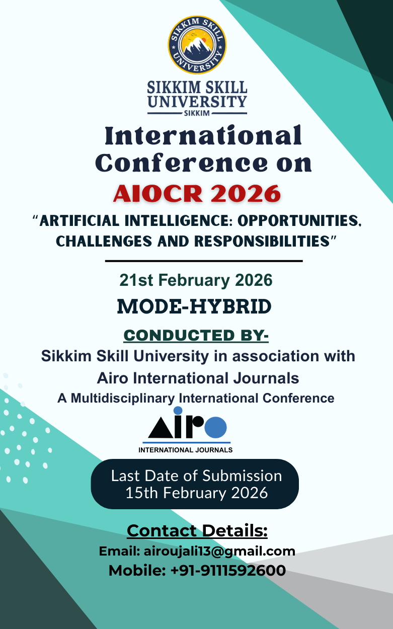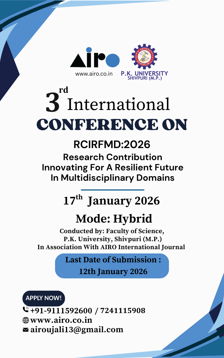 If copied or fully plagiarized unacceptable articles or research papers are submitted or if any real author or patent or copyright issue arises then Airo Journals will never be responsible for any issue. Such articles will be deleted from the website with immediate effect. In such cases no fees will be refunded.